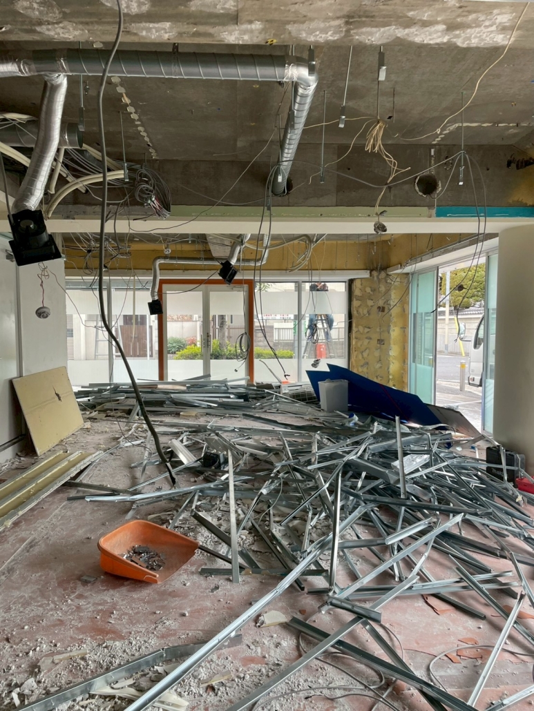 東京都足立区竹ノ塚の学習塾テナント内で進む内装解体工事と軽量鉄骨撤去の状況