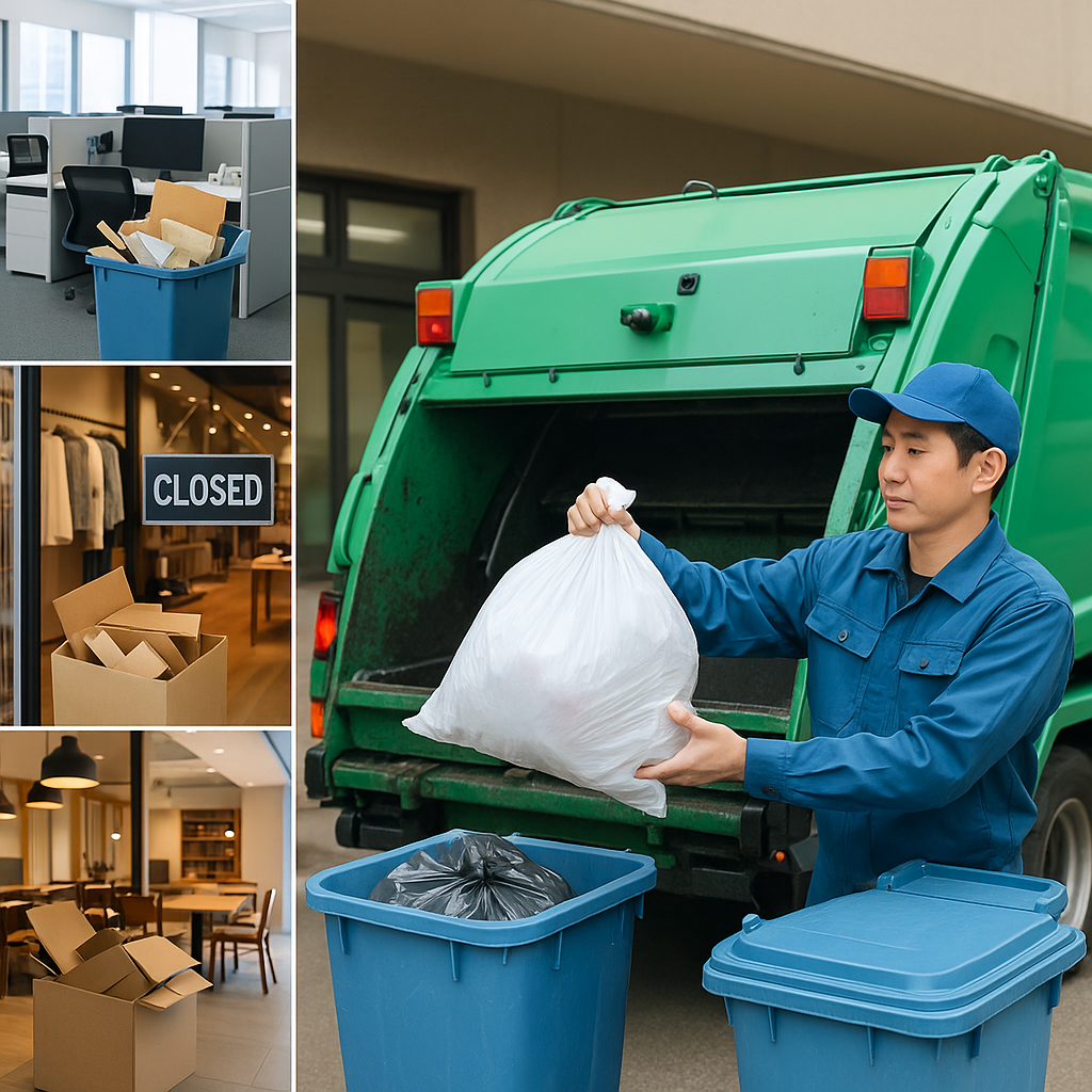 さらに、事業系一般廃棄物にも対応し、店舗・オフィス・テナントビル・一般家庭から発生する生活ごみ・粗大ごみまで適正処理が可能です。